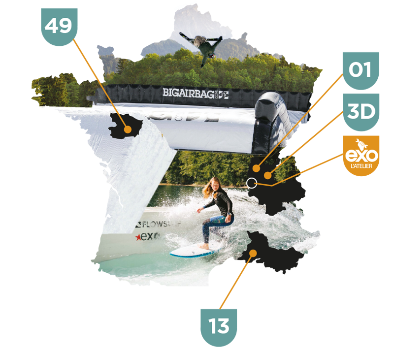 At Exo, we invite you to discover skiing on the 4 spots of our network and practice water skiing, kneeboarding, wakeboarding.